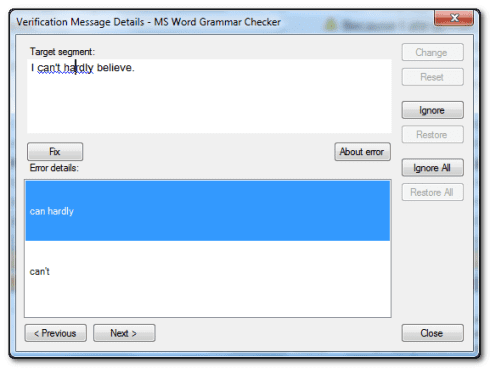 This application adds the Microsoft Word Grammar Checker to the SDL Trados Studio tool as part of the quality assurance features. The plugin is easy to install and its operation is executed through the Batch Task category. There is an option to run the Grammar Checker in real time as you translate the project segments.